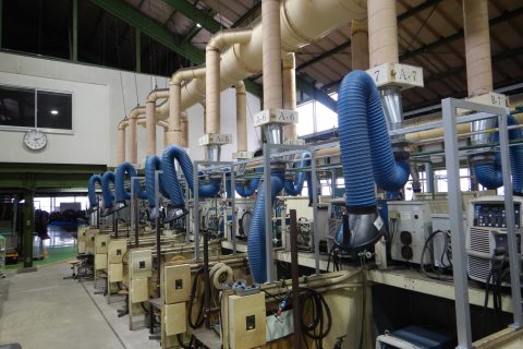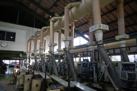 溶接実習場内フード交換前