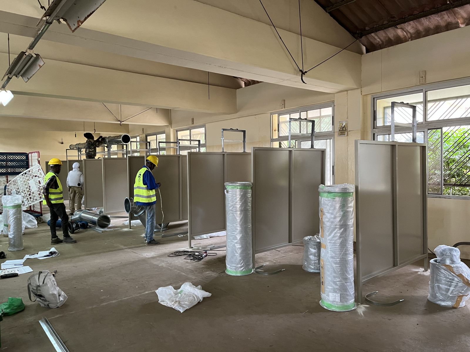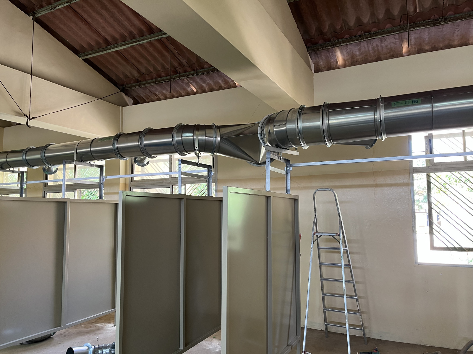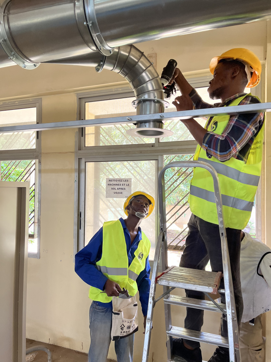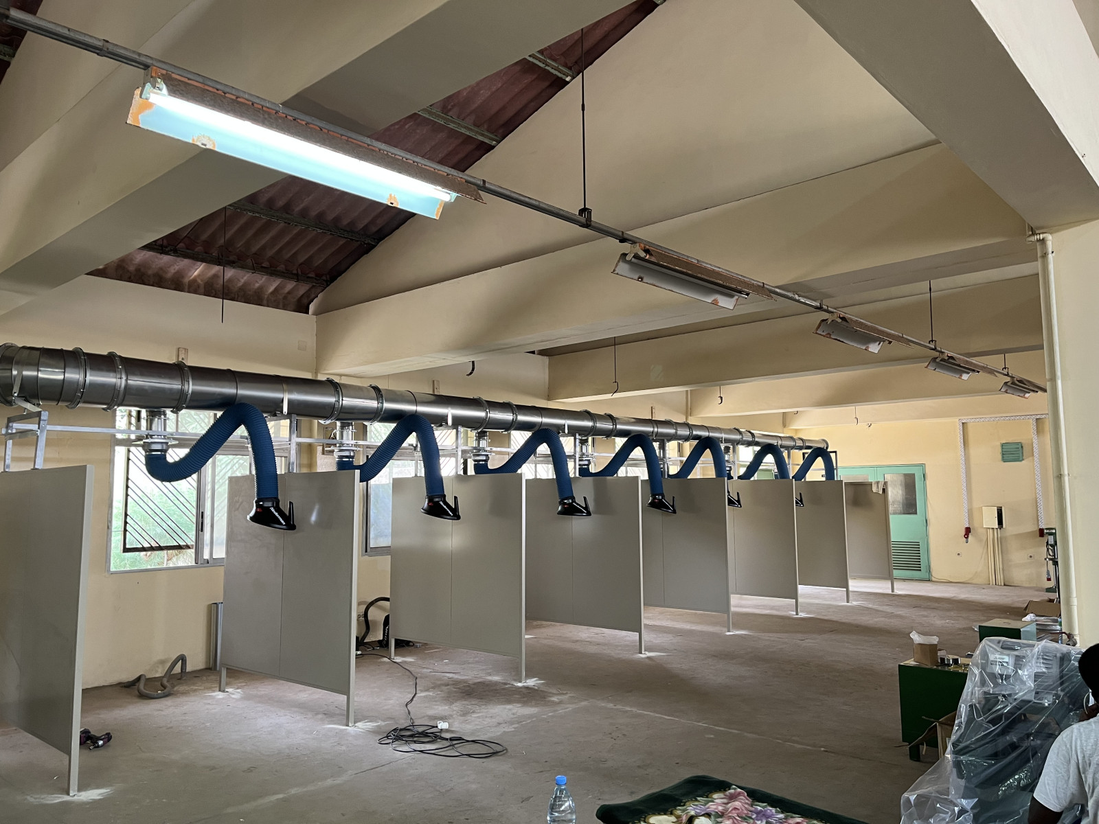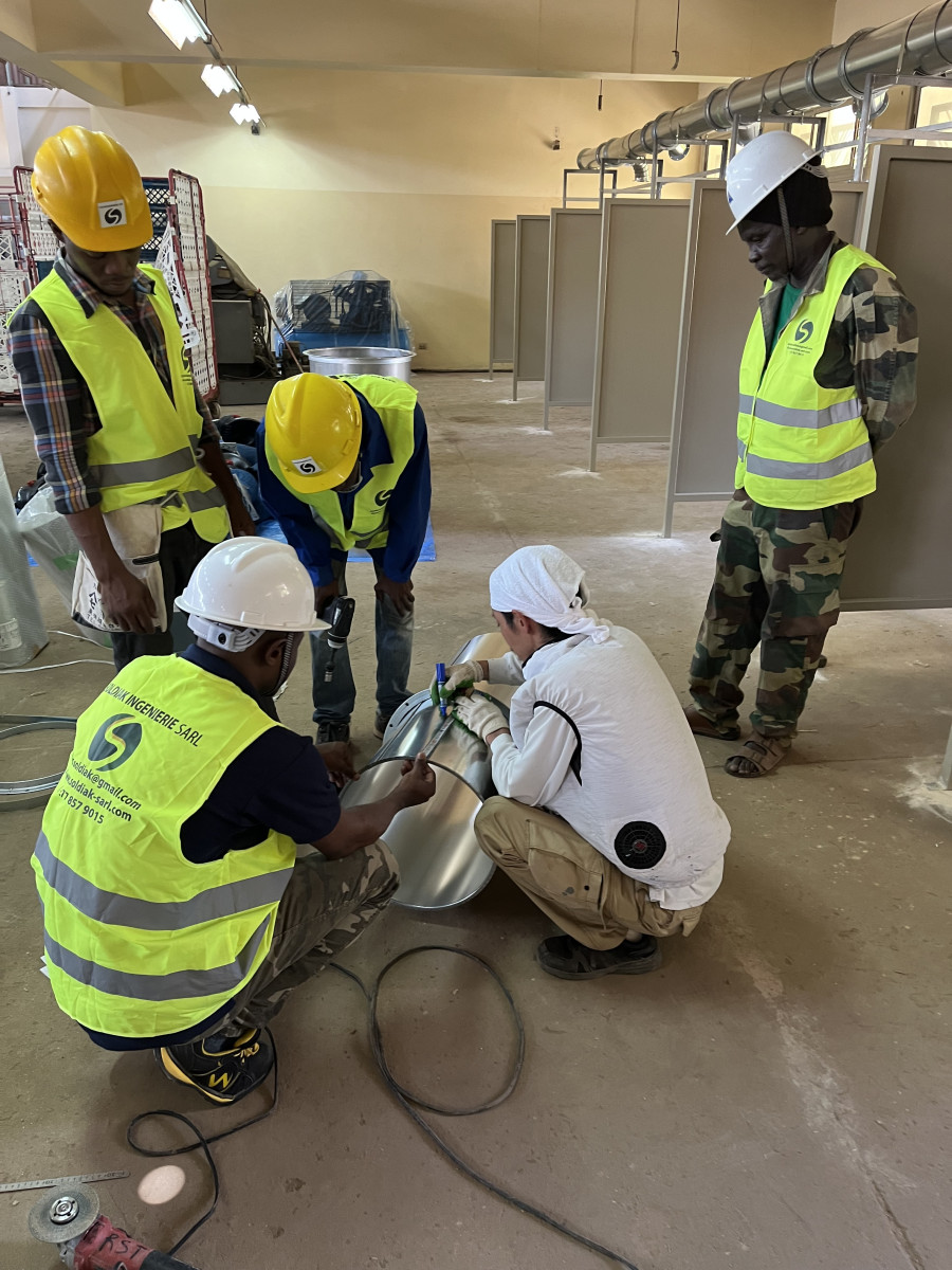 アフリカ セネガルCFPT溶接実習場 溶接ヒューム集塵機 新設工事 2026/04/21 搬入時 実習場ダクト工事、遮光板据付 ダクト工事 ダクト工事 遮光板 設置 吸込みフード 遮光板設置完了 操作盤設置 設置完了 溶接実習場内施工 溶接実習場内の配管、溶接ブース、フード(ネダーマン製)の施工例となります。 溶接ブース、配管等はご要望に合わせて施工いたします。